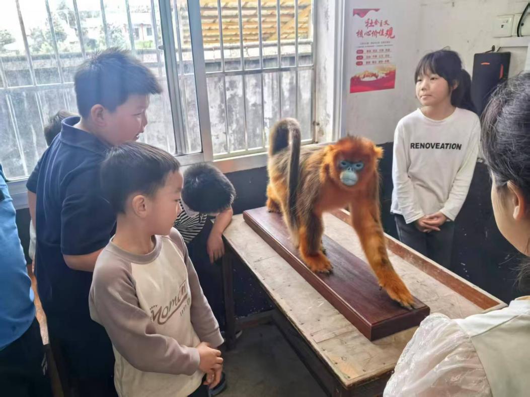当金丝猴实体标本被展示出来时,孩子们忍不住凑近观察,争先恐后地描述它的外形特征。在老师的引导下,他们很快总结出“仰鼻猴属”最核心的标志性特征:“朝天鼻”。这时,一个孩子突然好奇地问:“那下雨怎么办?会不会流到鼻子里?”现场顿时笑成一片。这样的问题,正是课堂最珍贵的火花。它让科普不再是单向的灌输,而是一场双向的、充满温度的对话。